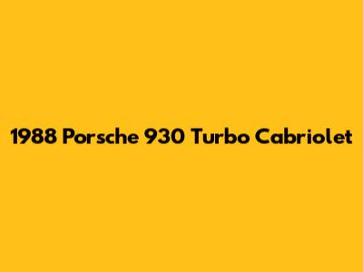 1988 Porsche 930 Turbo Cabriolet: A Classic Beauty