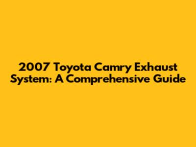2007 Toyota Camry Exhaust System: A Comprehensive Guide