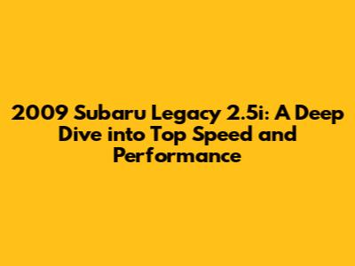 Whether you're curious about its capabilities or just want to learn more about this popular Subaru model, understanding the 2009 Subaru Legacy 2.5i's top speed, the factors that affect it, and potential modifications will help you appreciate this car even more. If you have any further questions or want to delve deeper into a specific aspect of this car's performance, feel free to ask! Drive safe and enjoy the ride!