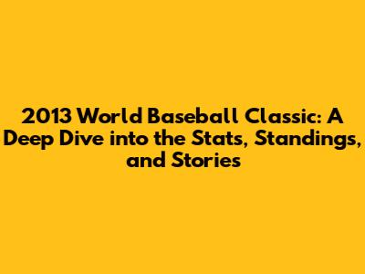 Hey baseball fanatics! Let's rewind the clock to 2013, shall we? That's right, we're diving deep into the 2013 World Baseball Classic! This tournament was a wild ride, filled with dramatic moments, unexpected heroes, and some seriously impressive stats. Get ready for a home run of information as we break down everything you need to know about the 2013 WBC, from the nail-biting games to the players who lit up the stage. This tournament was more than just a competition; it was a global celebration of baseball, showcasing the sport's universal appeal and the incredible talent scattered across the globe. We'll be looking at the key stats, the final standings, and some of the unforgettable stories that made the 2013 WBC a classic. Buckle up, because we're about to step up to the plate!