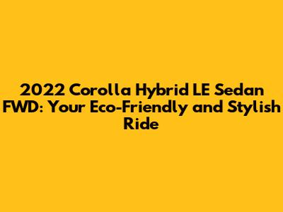 Hey guys! Are you looking for a car that's not only super fuel-efficient but also packed with style and modern features? Well, let's dive deep into the 2022 Corolla Hybrid LE Sedan FWD. This car isn't just about saving gas; it's about making a statement while being kind to the environment. We're going to explore everything that makes this hybrid a fantastic choice for your daily commute and beyond. Get ready to discover why the 2022 Corolla Hybrid LE might just be your next dream car!