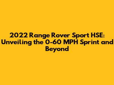 Hey everyone! Today, we're diving deep into the world of the 2022 Range Rover Sport HSE, specifically focusing on its 0-60 mph acceleration capabilities and overall performance. If you're anything like me, you're always curious about how quickly a car can get off the line, right? Well, the Sport HSE is a pretty exciting ride, so let's get into it, shall we?