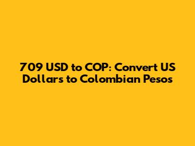 Converting 709 USD to Colombian pesos involves understanding the current exchange rate, the factors that influence it, and the available tools for making the conversion. By monitoring exchange rates, avoiding common mistakes, and using reputable sources, you can ensure a smooth and cost-effective transaction. Whether you're traveling, sending money to family, or investing, knowing the value of your USD in COP is essential for making informed decisions. So next time you wonder, "How much is 709 USD in Colombian pesos?" you'll have all the knowledge you need right at your fingertips!