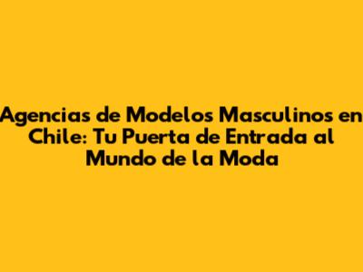 Agencias De Modelos Masculinos En Chile: Guía Completa