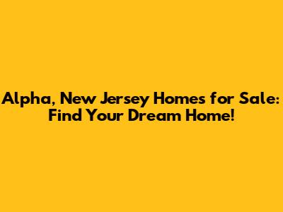 Alpha NJ Homes For Sale: Find Your Dream Home!
