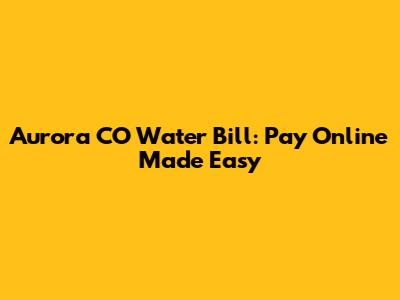 Aurora CO Water Bill: Pay Online Made Easy