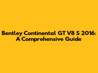 Bentley Continental GT V8 S 2016: A Comprehensive Guide