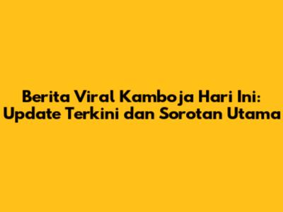 Berita Viral Kamboja Hari Ini: Kabar Terbaru & Sorotan