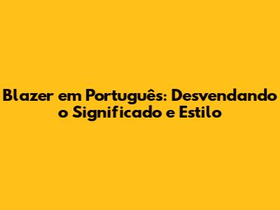 Blazer Em Português: Desvendando O Significado E Estilo