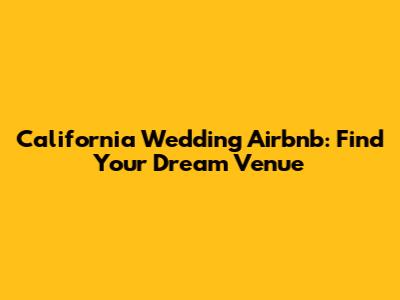 California Wedding Airbnb: Find Your Dream Venue