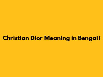 Christian Dior In Bengali: What Does It Mean?