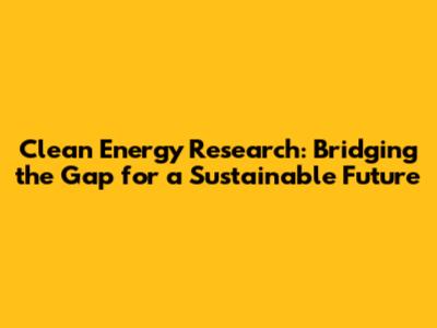 Clean Energy Research: Bridging The Gap For A Sustainable Future