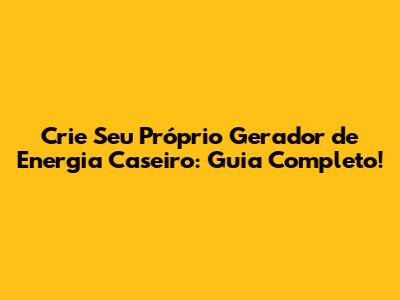 Crie Seu Próprio Gerador De Energia Caseiro: Guia Completo!