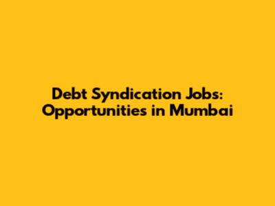 Debt Syndication Jobs: Opportunities In Mumbai