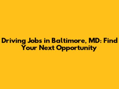 Driving Jobs In Baltimore, MD: Find Your Next Opportunity