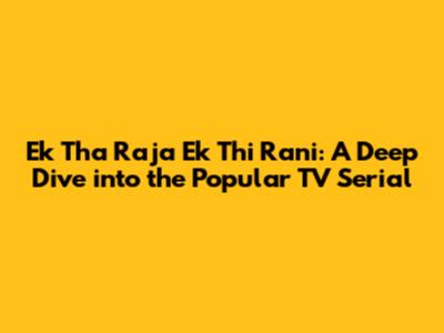Ek Tha Raja Ek Thi Rani: A Deep Dive Into The Popular TV Serial