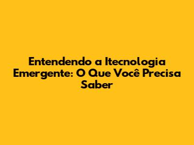 Entendendo A Itecnologia Emergente: O Que Você Precisa Saber