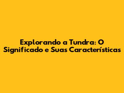 O Significado da Palavra Tundra