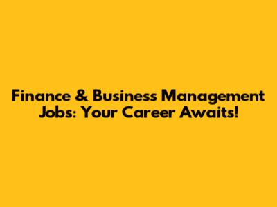 Finance & Business Management Jobs: Your Career Awaits!