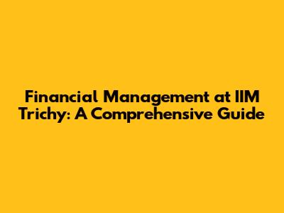 Financial Management At IIM Trichy: A Comprehensive Guide