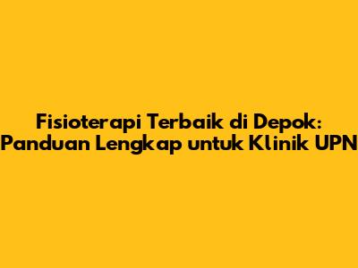 Fisioterapi Terbaik Di Depok: Panduan Lengkap Untuk Klinik UPN