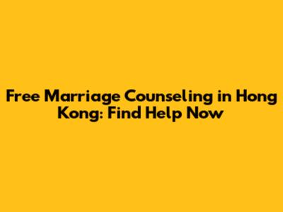 Free Marriage Counseling In Hong Kong: Find Help Now