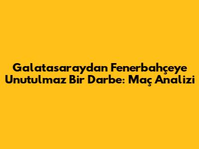 Galatasaray'dan Fenerbahçe'ye Unutulmaz Bir Darbe: Maç Analizi