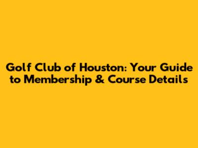 Golf Club Of Houston: Your Guide To Membership & Course Details
