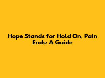Hope Stands For Hold On, Pain Ends: A Guide