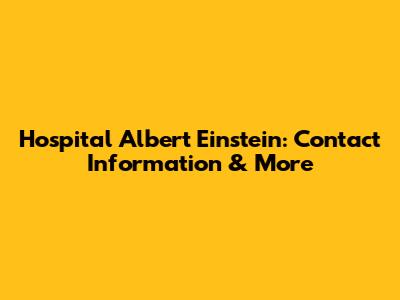 Hospital Albert Einstein: Contact Information & More