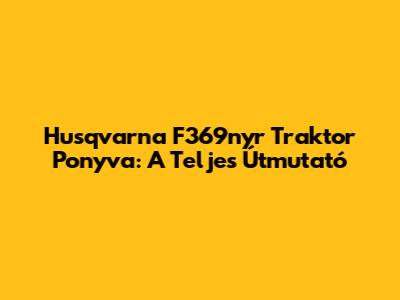 Husqvarna F369nyr Traktor Ponyva: Minden, Amit Tudnod Kell