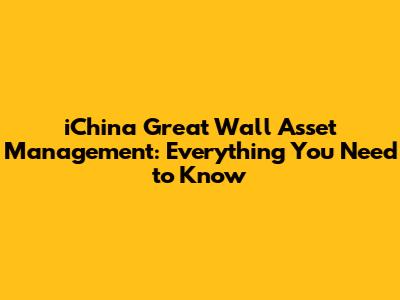 Understanding iChina Great Wall Asset Management