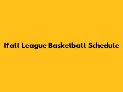 Ifall League Basketball Schedule