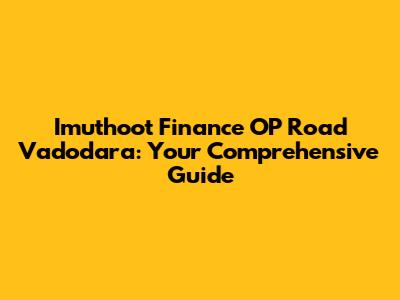 Hey there, finance folks! Are you looking for a reliable financial partner in Vadodara, specifically around OP Road? If so, you've probably heard of Imuthoot Finance. They are a big name in the business, and for good reason! This article is designed to be your go-to guide, answering all your burning questions and providing you with the inside scoop on Imuthoot Finance's OP Road branch. We'll dive deep into their services, what makes them tick, and how they can potentially help you achieve your financial goals. So, grab a coffee (or your beverage of choice), and let's get started.