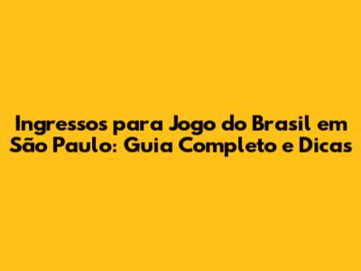 Ingressos Brasil Em São Paulo: Guia Completo E Dicas