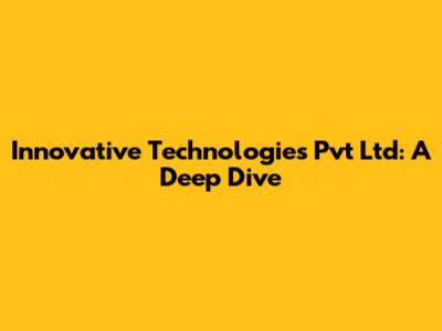 Innovative Technologies Pvt Ltd: A Deep Dive