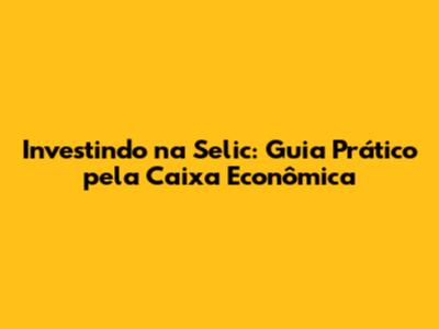 Investindo Na Selic: Guia Prático Pela Caixa Econômica