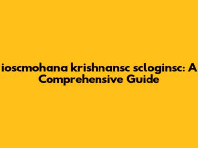 Ioscmohana Krishnansc Scloginsc: A Comprehensive Guide