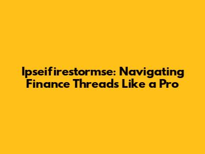 Ipseifirestormse: Navigating Finance Threads Like A Pro