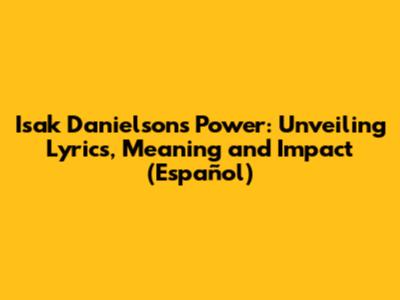 Isak Danielson: Power - Exploring Lyrics, Meaning & Impact (Español)