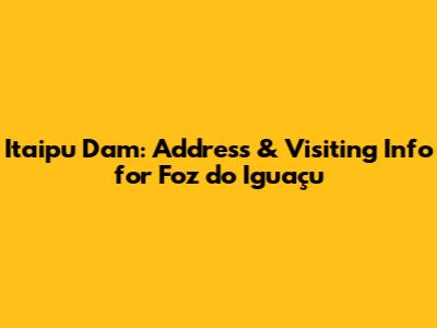 Are you planning a trip to Foz do Iguaçu and wondering about the Itaipu Dam address and how to visit this impressive landmark? You've come to the right place! This comprehensive guide will provide you with all the essential information you need to plan your visit, including the exact address, directions, visiting hours, tour options, and some fascinating facts about the dam. Whether you're a seasoned traveler or a first-time visitor, we'll ensure you have a memorable and informative experience at the Itaipu Dam.