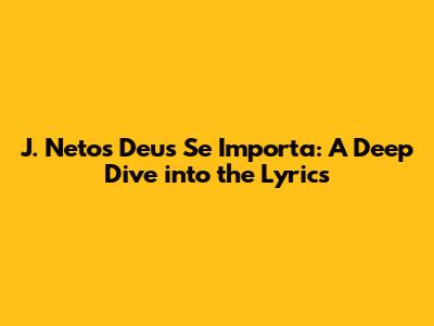 Hey guys! Let's dive into something beautiful today: the lyrics of J. Neto's powerful song, "Deus Se Importa" (God Cares). This song is more than just a collection of words; it's a heartfelt message of faith, comfort, and reassurance. If you're looking for a song that speaks to the soul, this is it! We'll explore the meaning behind each line, breaking down the message and feeling it evokes. So, grab your headphones, get comfortable, and let's explore the depths of "Deus Se Importa." We're going to examine the lyrics, the themes presented, and the emotions it tries to convey. Let's find out what makes this song so special and why it resonates with so many people. Trust me, it's a journey worth taking, and you will understand more about faith and devotion!