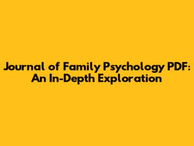 The Journal of Family Psychology is an indispensable resource for anyone interested in understanding and improving family well-being. With its comprehensive coverage, rigorous scientific standards, and practical relevance, it provides valuable insights for students, researchers, and practitioners alike. By knowing how to find and access the journal in PDF format, you can easily stay informed about the latest research and contribute to the advancement of the field. So go ahead, dive in, and explore the wealth of knowledge that the Journal of Family Psychology has to offer!
