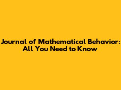 Journal Of Mathematical Behavior: All You Need To Know