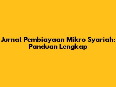 Jurnal Pembiayaan Mikro Syariah: Panduan Lengkap