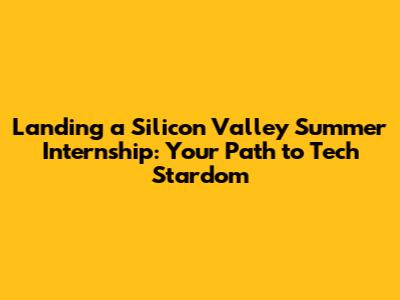 Landing A Silicon Valley Summer Internship: Your Path To Tech Stardom