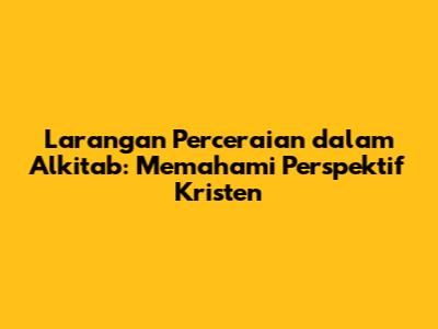 Larangan Perceraian Dalam Alkitab: Perspektif Kristen