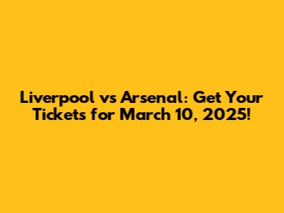 Alright, football fanatics! Are you ready for a clash of titans? The highly anticipated Liverpool vs. Arsenal match on March 10, 2025, is just around the corner, and the race to snag tickets is on! This isn't just any game; it's a battle between two Premier League giants, promising a rollercoaster of emotions, nail-biting moments, and the electric atmosphere that only a live football match can provide. If you're a die-hard fan, you understand the thrill of witnessing your favorite team in action, the roar of the crowd, and the shared passion that binds us all. But how do you make sure you're there to experience it all firsthand? Let's dive into everything you need to know about securing your Liverpool vs. Arsenal tickets for this epic showdown.