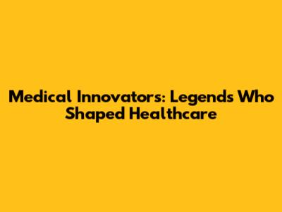 Medical Innovators: Legends Who Shaped Healthcare