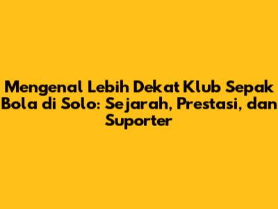 Salah satu klub sepak bola di Solo yang memiliki sejarah panjang adalah Persis Solo. Klub ini didirikan pada tahun 1923 dan menjadi salah satu klub tertua di Indonesia. Persis Solo telah memberikan kontribusi besar bagi perkembangan sepak bola di Indonesia, dengan melahirkan banyak pemain-pemain berkualitas yang mampu bersaing di tingkat nasional maupun internasional. Selain Persis Solo, terdapat pula klub-klub sepak bola lain di Solo yang juga memiliki sejarah dan prestasi yang membanggakan, seperti Persiharjo Sukoharjo dan klub-klub amatir lainnya. Klub-klub ini juga turut berperan dalam mengembangkan sepak bola di Solo, dengan memberikan kesempatan bagi para pemain muda untuk mengembangkan potensi mereka.